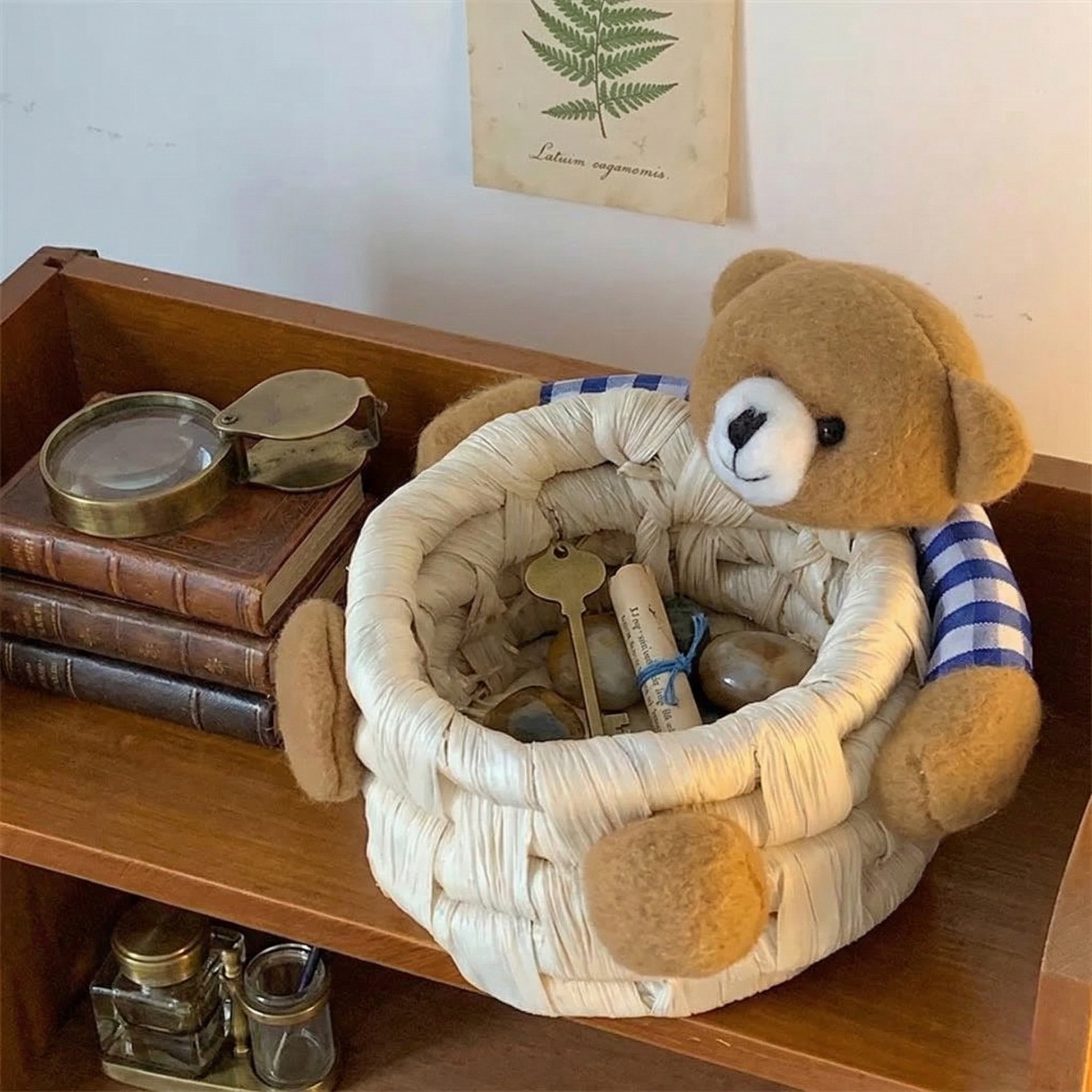 🌟 Why You’ll Love It Tidy up with a smile! This Korean-style bear storage basket is where cozy aesthetics meet daily organization. Featuring a cute 3D bear face and a classic gingham collar, it turns any cluttered desk into a curated, Instagram-worthy sanctuary.
